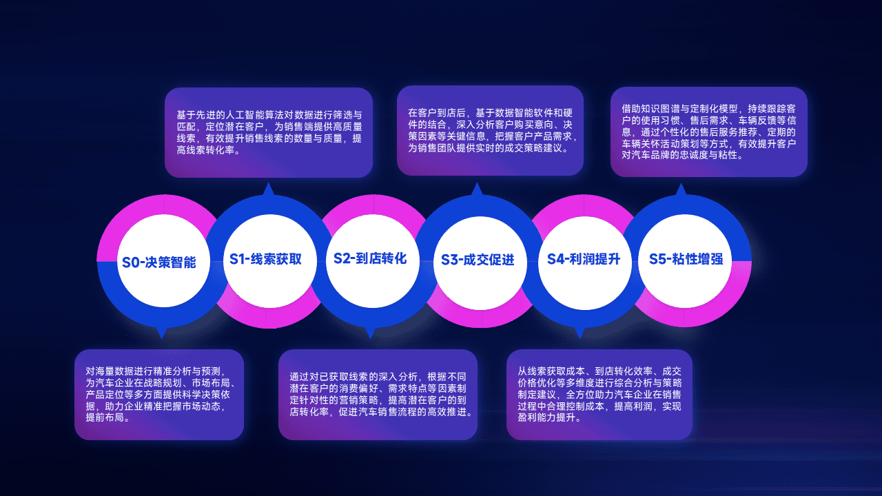 通过拓宽潜在客户来源、、、优化线索分配并提高到店转化率,,,,以增强销售效率。。。同时,,利用线索数据不断优化分析模型,,有效提升转化率,,,,扩大营销影响力。。。。